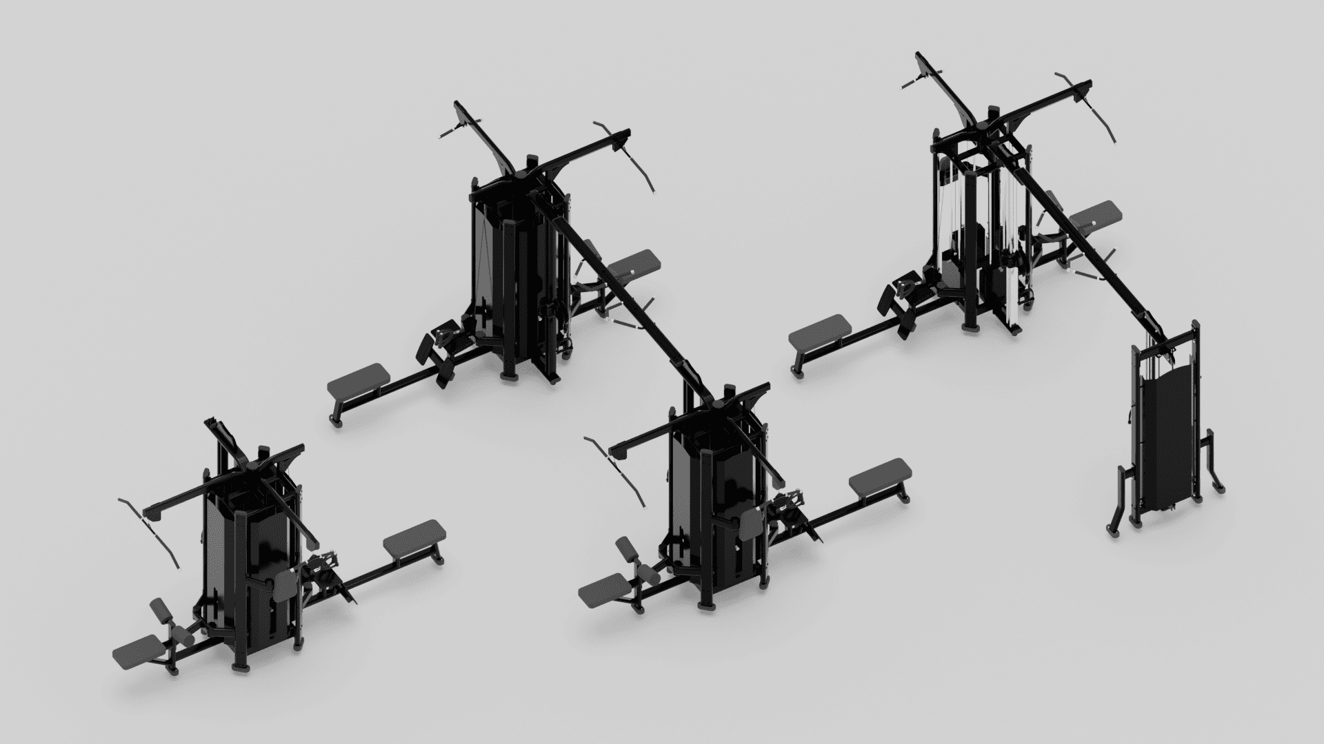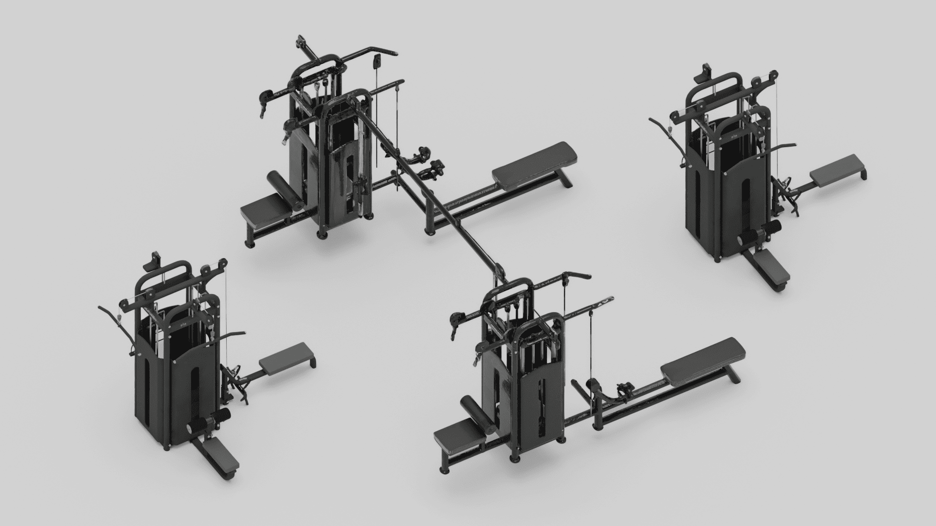 Este aparelho é o próximo nível em equipamento profissional. Esta estrutura inclui quatro estações de trabalho independentes que permitem a vários utilizadores treinar ao mesmo tempo. É perfeita para ginásios comerciais, hotéis, clínicas de fisioterapia e centros desportivos que exigem eficiência e funcionalidade.