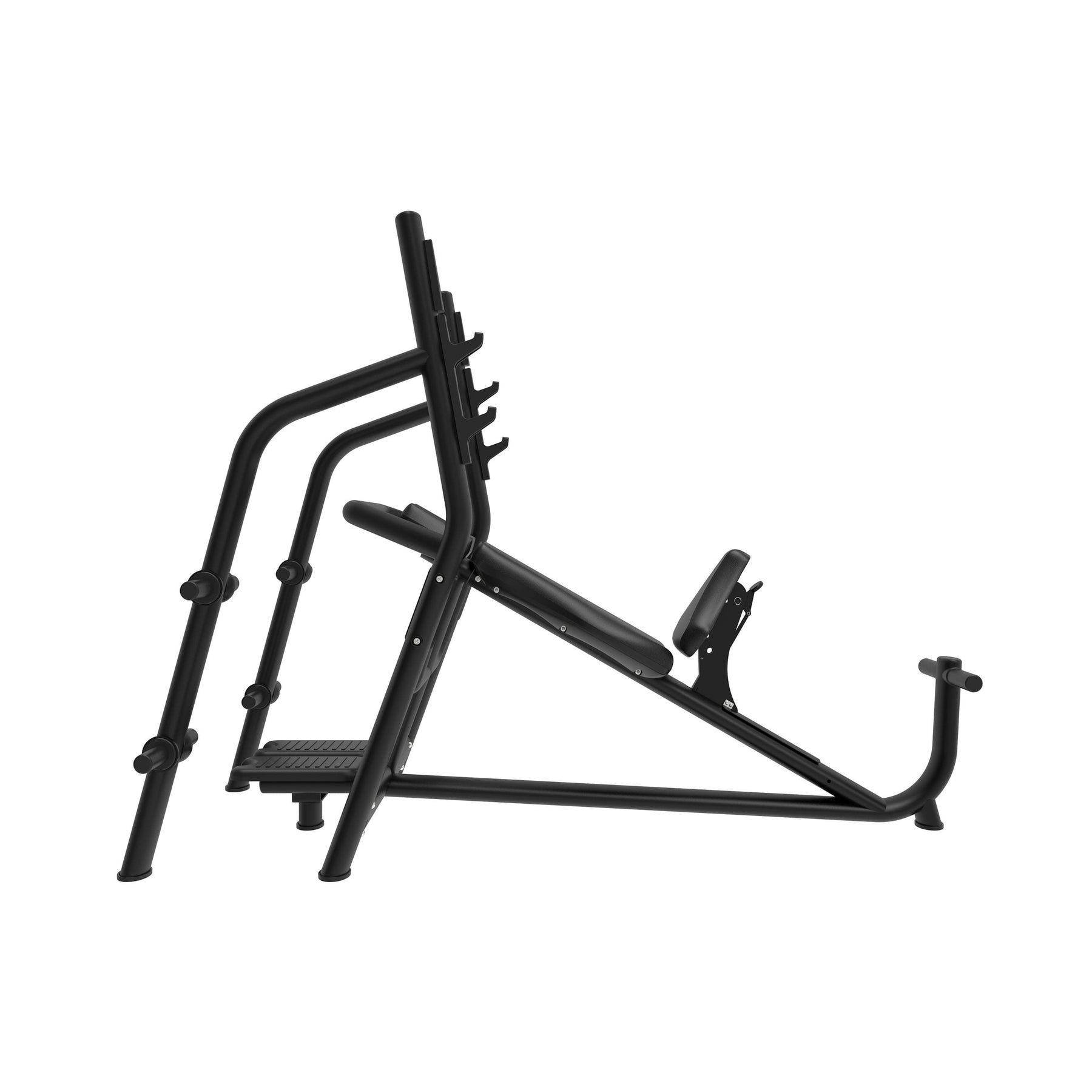 Fabricado com materiais de alta durabilidade, o banco combina ergonomia, rigidez estrutural e estética profissional. O estofamento de espuma de alta densidade revestido em couro sintético proporciona conforto mesmo durante as séries mais intensas. Ideal para ginásios comerciais ou zonas de força avançadas, este modelo oferece o equilíbrio perfeito entre segurança, desempenho e design.