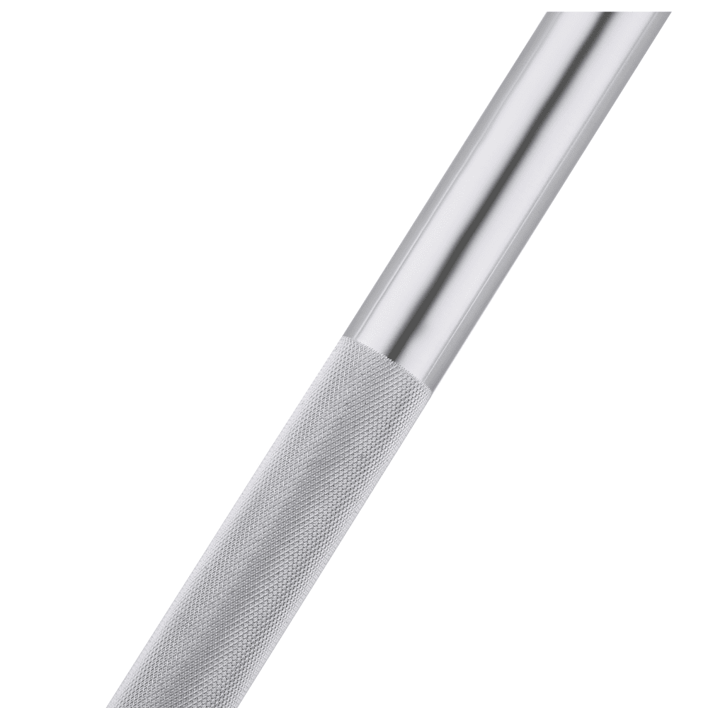 Fabricada em aço 45, incorpora 2 rolamentos e 2 casquilhos de bronze (bronze bushings) que proporcionam um movimento mais suave e controlado. O seu acabamento cromado, o seu diâmetro de pega de 25 mm e a sua capacidade de carga até 315 kg tornam-na numa barra fiável, duradoura e adequada para treinos exigentes.