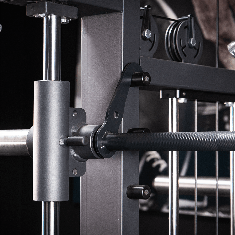 - 19 posições de bloqueio: Ajuste preciso para exercícios com barra e cabo.
