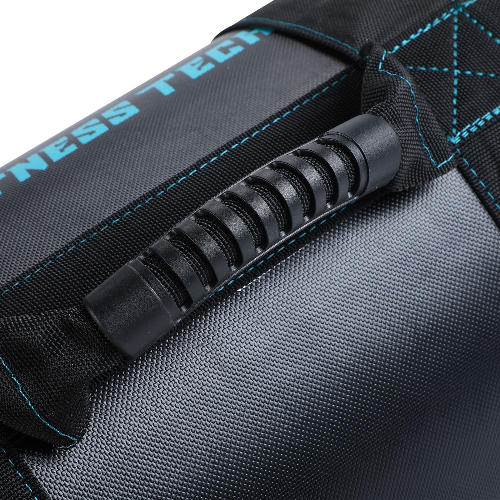 - Alças reforçadas e ergonómicas: Inclui alças resistentes que facilitam a pega em diferentes posições, permitindo mudanças rápidas de exercício com total segurança.