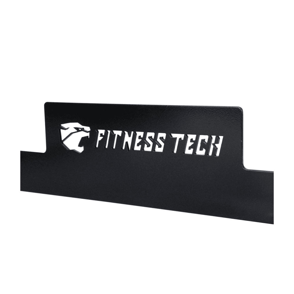 Fabricado em metal resistente com acabamento em preto mate, incorpora o logótipo da Fitness Tech gravado a laser, conferindo uma estética profissional e duradoura. O seu design foi pensado para se adaptar à padronização das esteiras do catálogo, permitindo pendurar modelos de até 50 cm de largura de forma segura e organizada.
